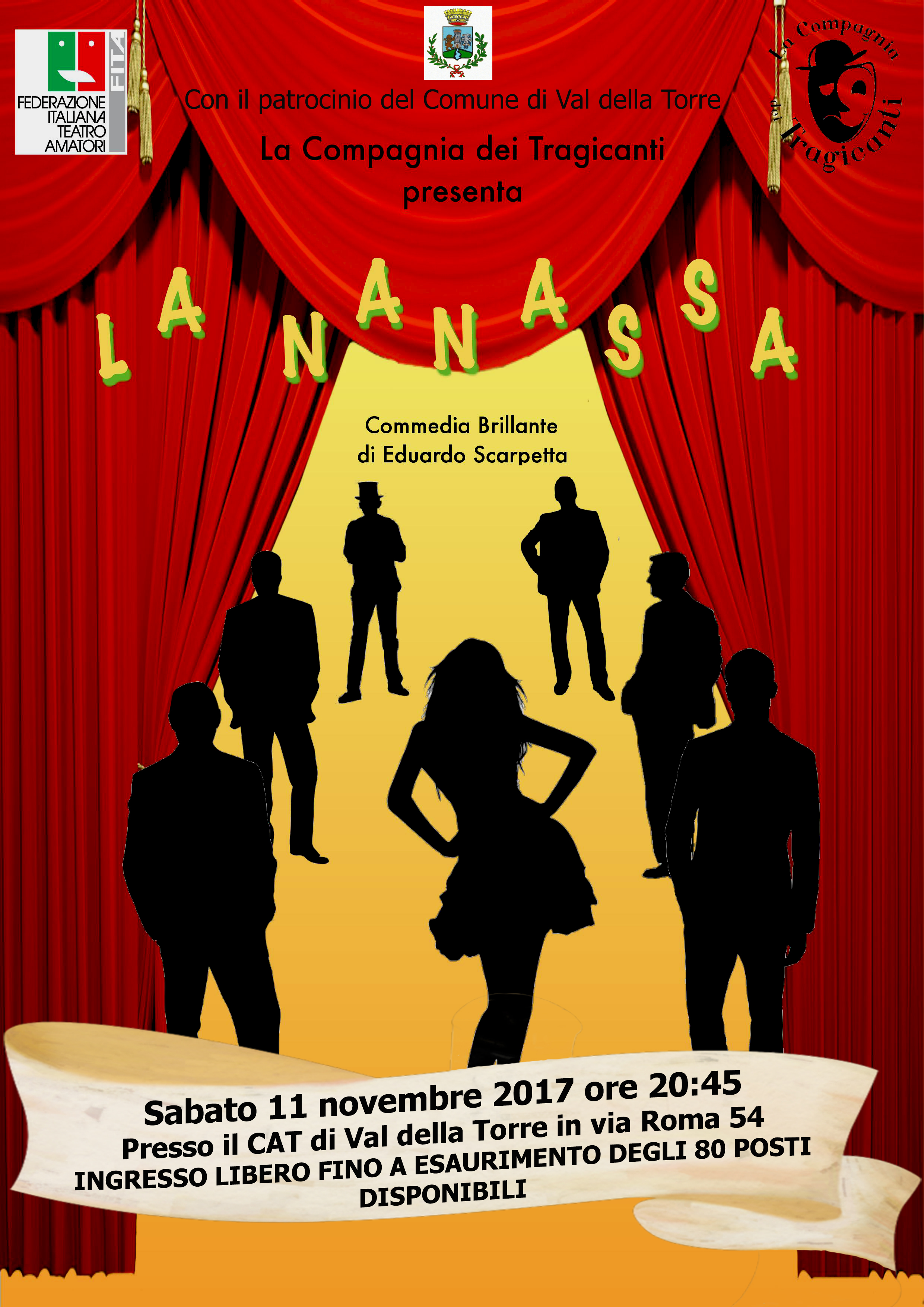 Sabato 11 Novembre alle ore 20.45 presso il CAT di Val della Torre, in via Roma 54, la Compagnia dei Tragicanti presenta "La Nanassa" commedia divertentissima in due atti di E. Scarpetta. Regia di Davide Giovannini e Andrea Immacolato.