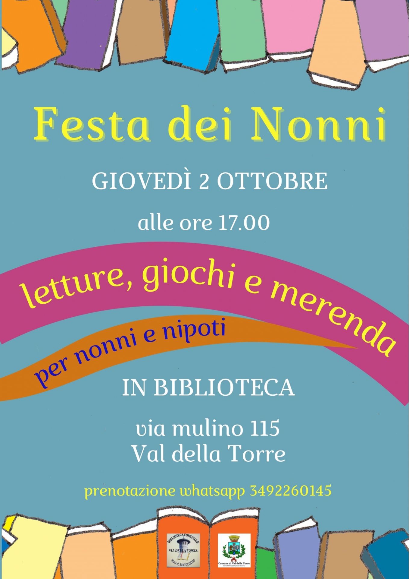 Festa dei nonni - Letture, giochi e merenda il 2.10.25 alle ore 17.00 presso la Biblioteca comunale.