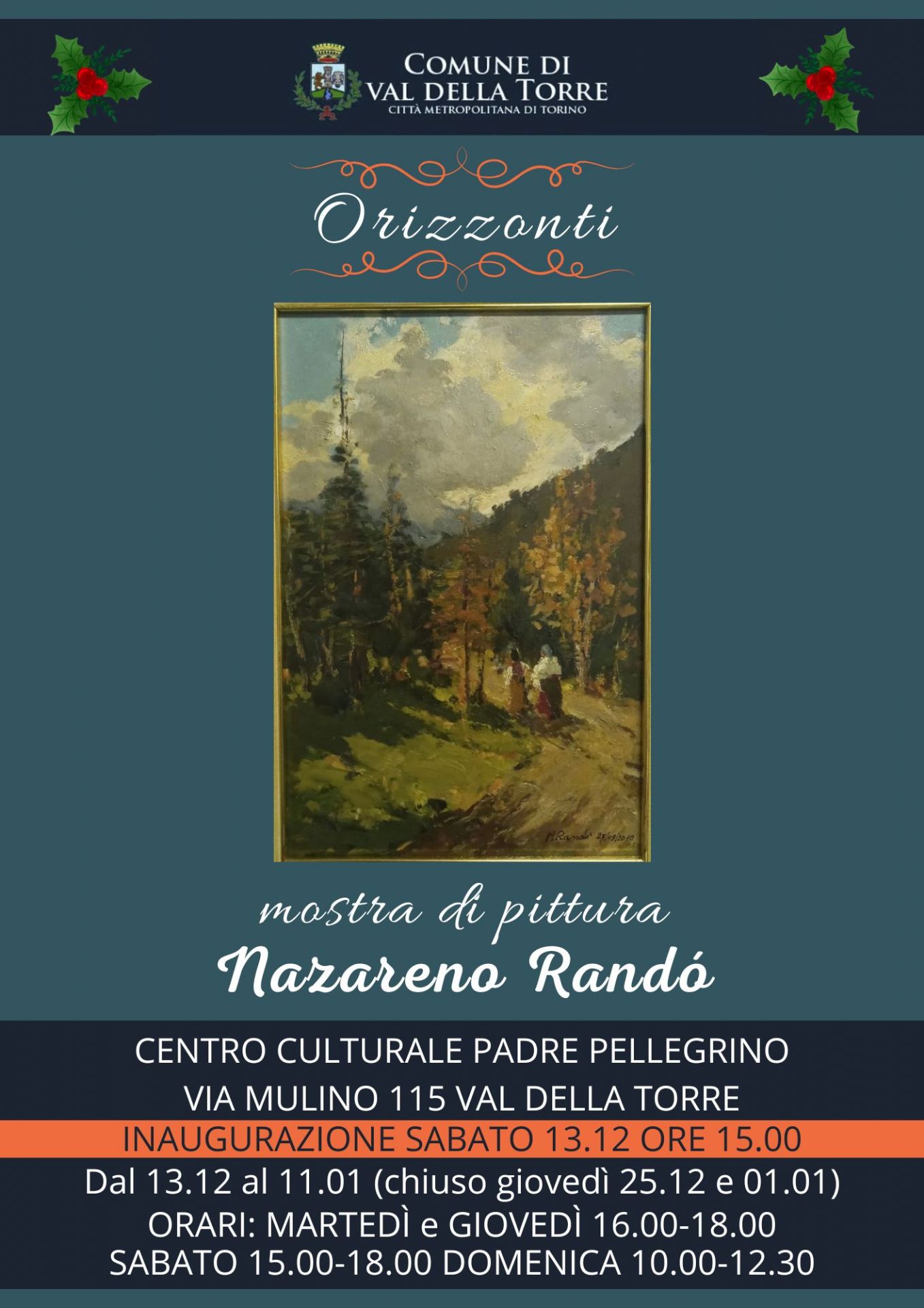 Inaugurazione Sabato 13.12.2025 ore 15.00 presso Centro Culturale Padre Pellegrino (Val della Torre, Via Mulino n. 115).