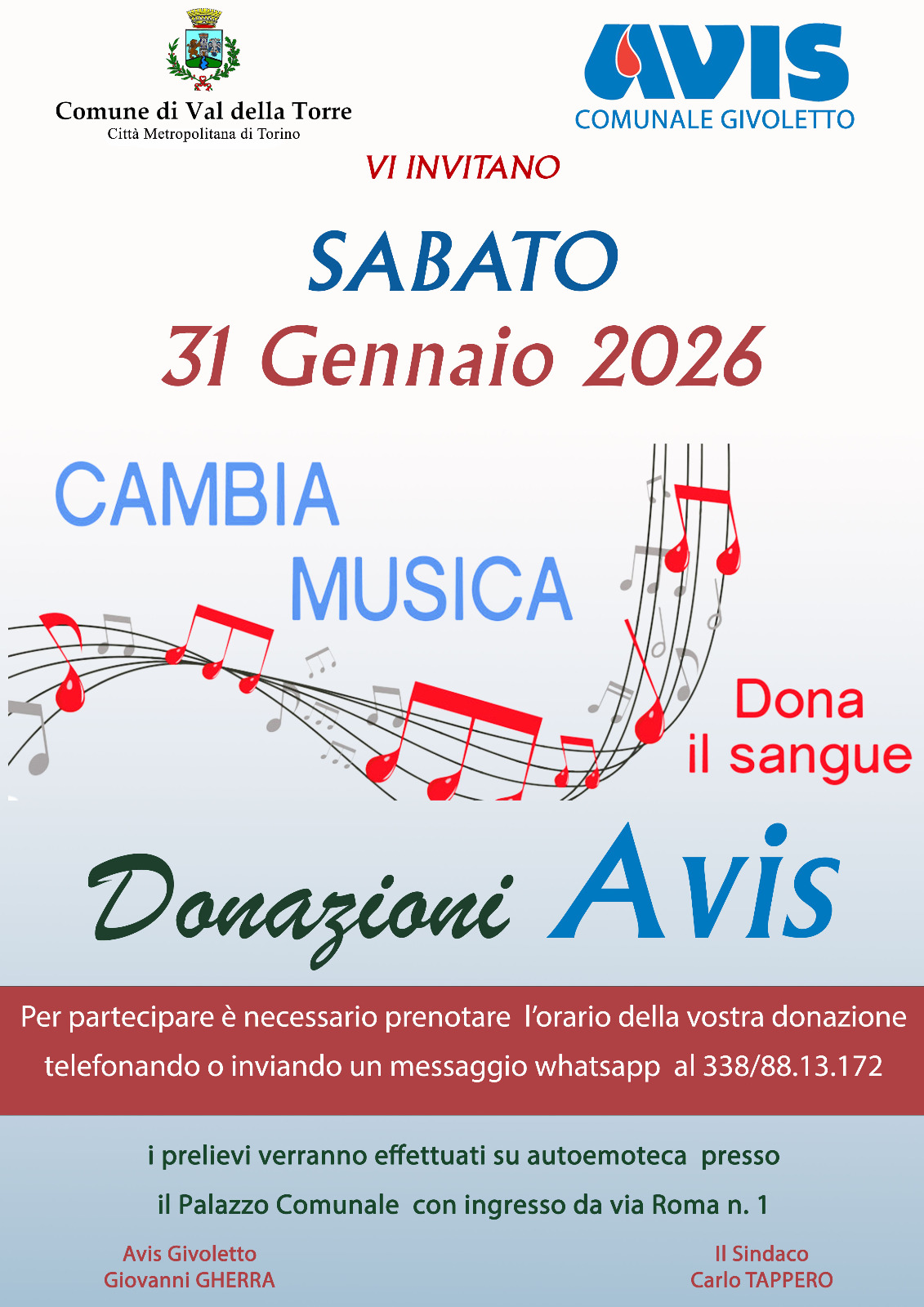 Per Partecipare è necessario prenotare l'orario della Vostra donazione utilizzando il recapito telefonico riportato sulla locandina.